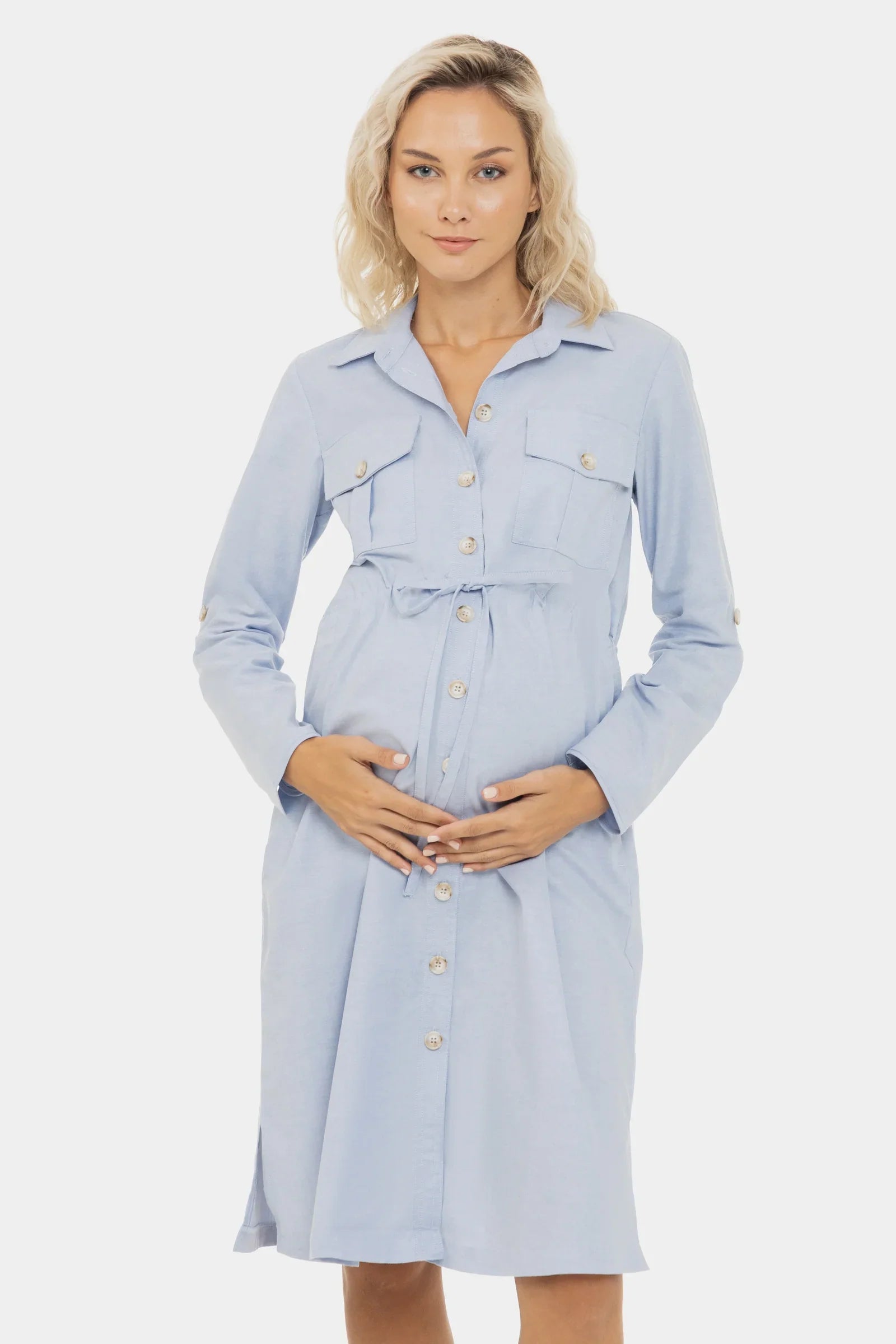 - Šaty jsou vyrobené z bavlněné směsi ve světle modré