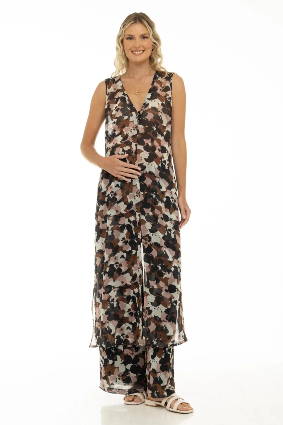 - Těhotenský kaftan z šifonu s květinovým vzorem