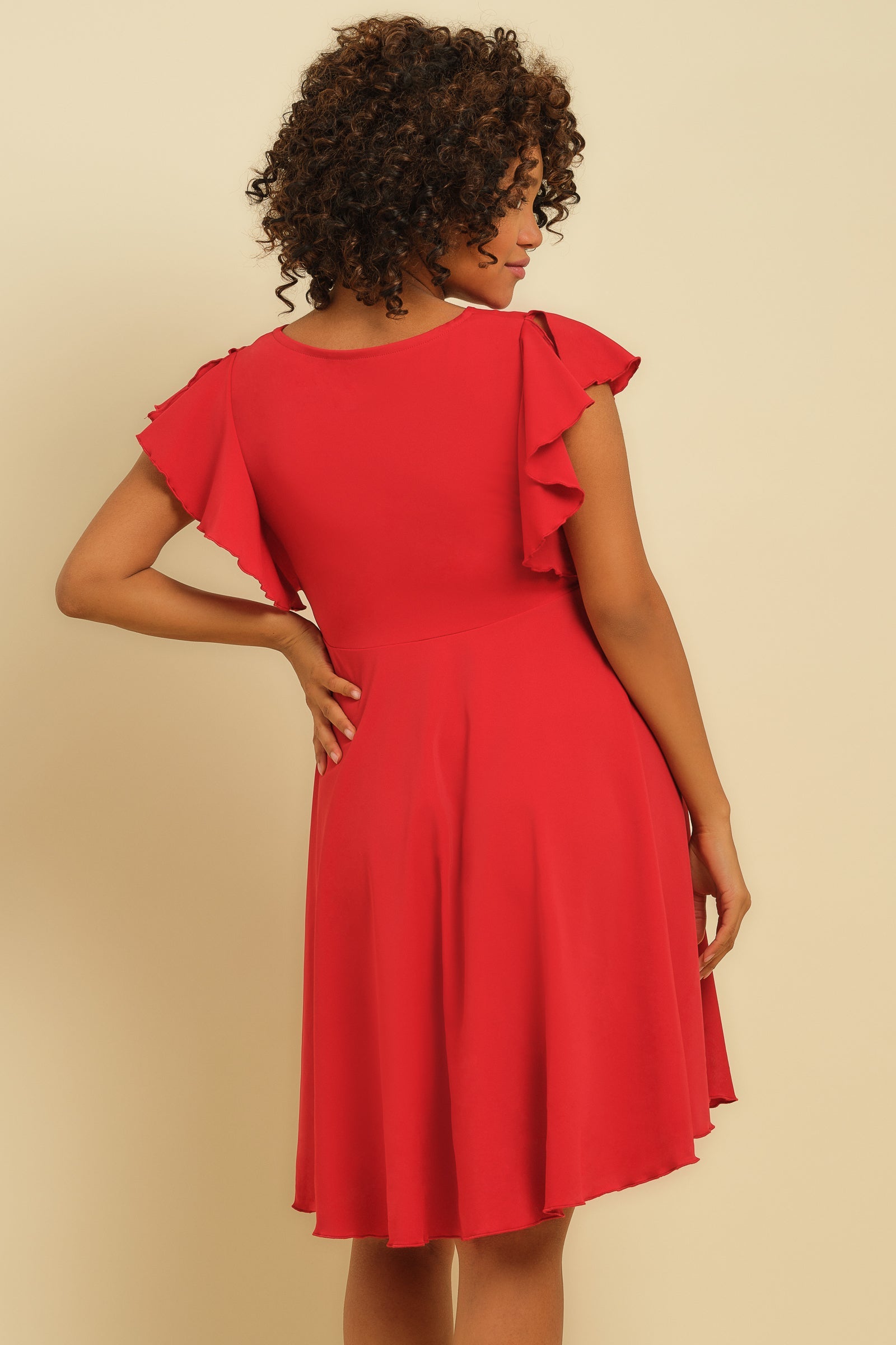 • Šaty jsou vyrobeny ze vzdušné elastické látky v barvách červená