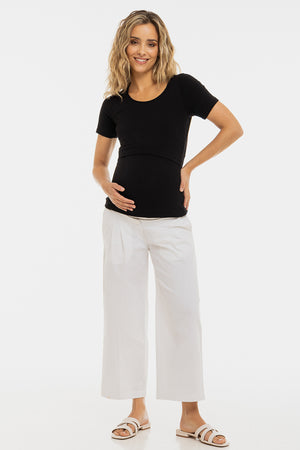Těhotenský a kojicí top z bavlněného žebrovaného úpletu - černý