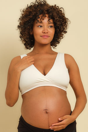 Těhotenský a kojicí top s řaseným výstřihem – ekru