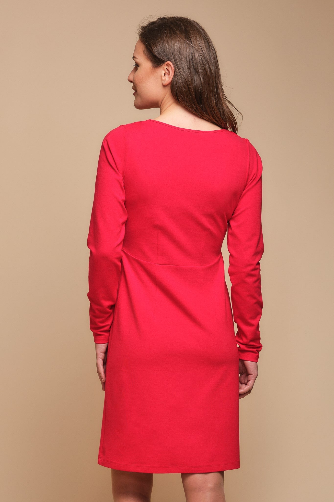 - Šaty jsou vyrobené ze silného žerzeje v barvách červená