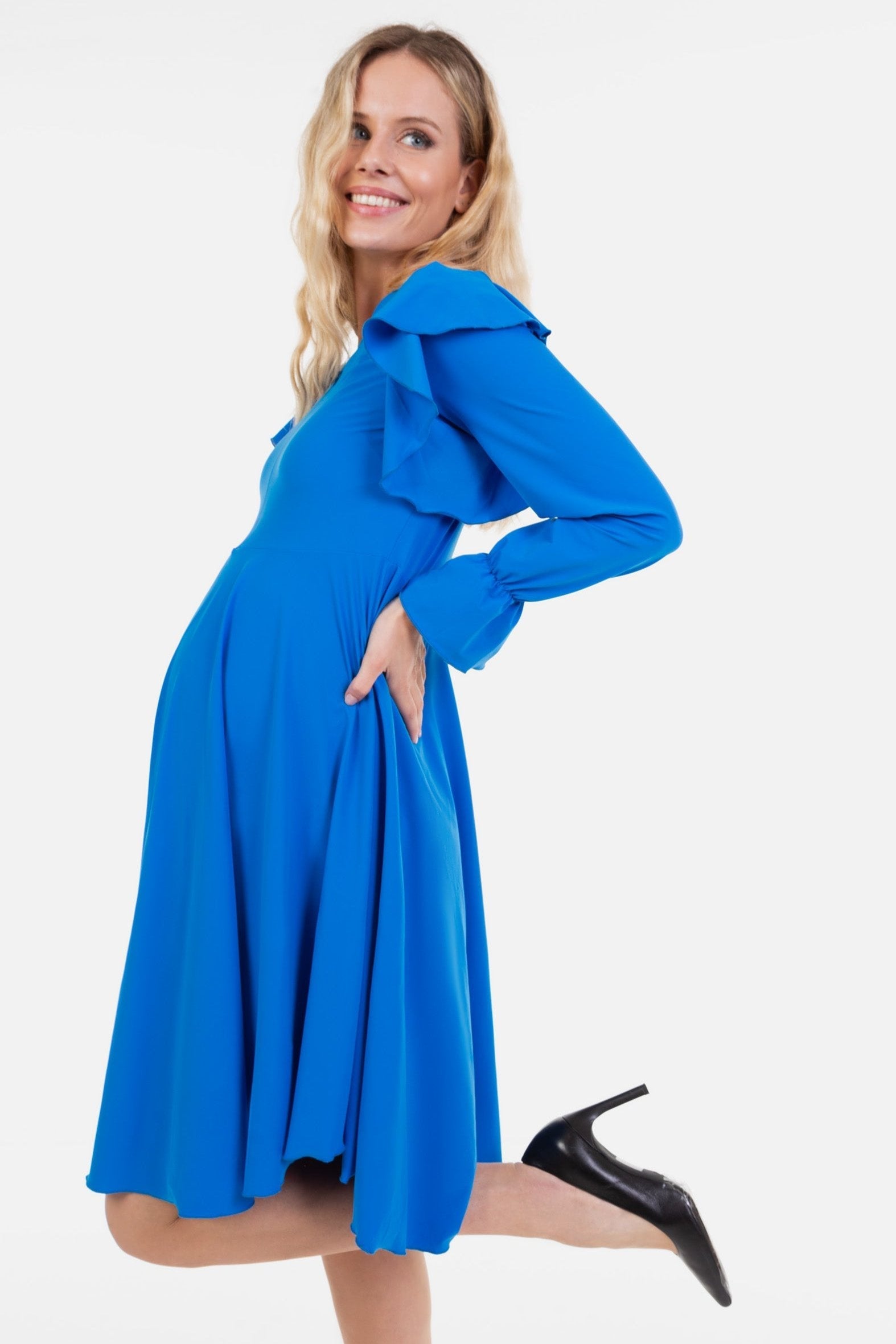 - Šaty jsou vyrobeny ze vzdušné elastické látky v sytě modré barvě