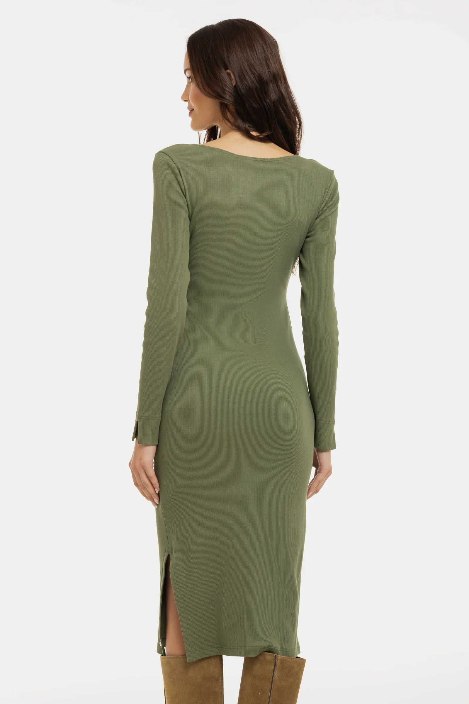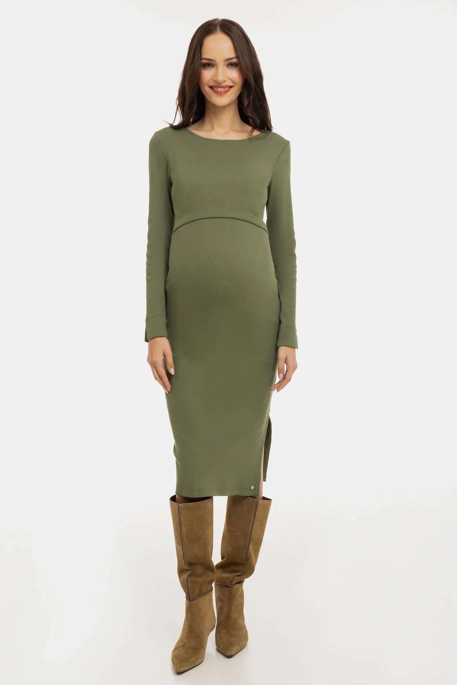 - Těhotenské šaty z bavlněného žebrovaného úpletu v v olivově zelené barvě