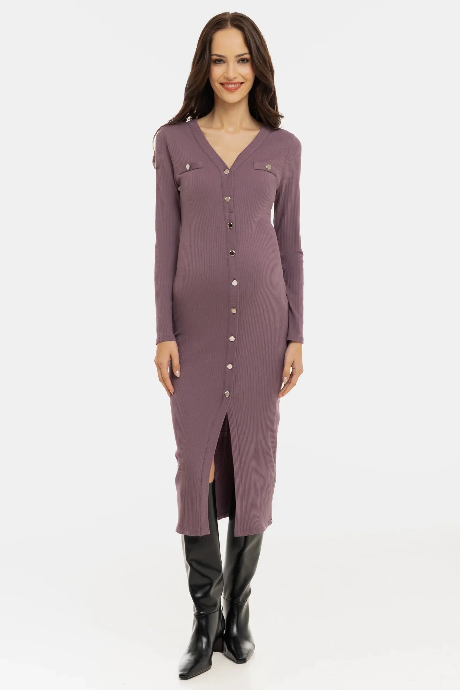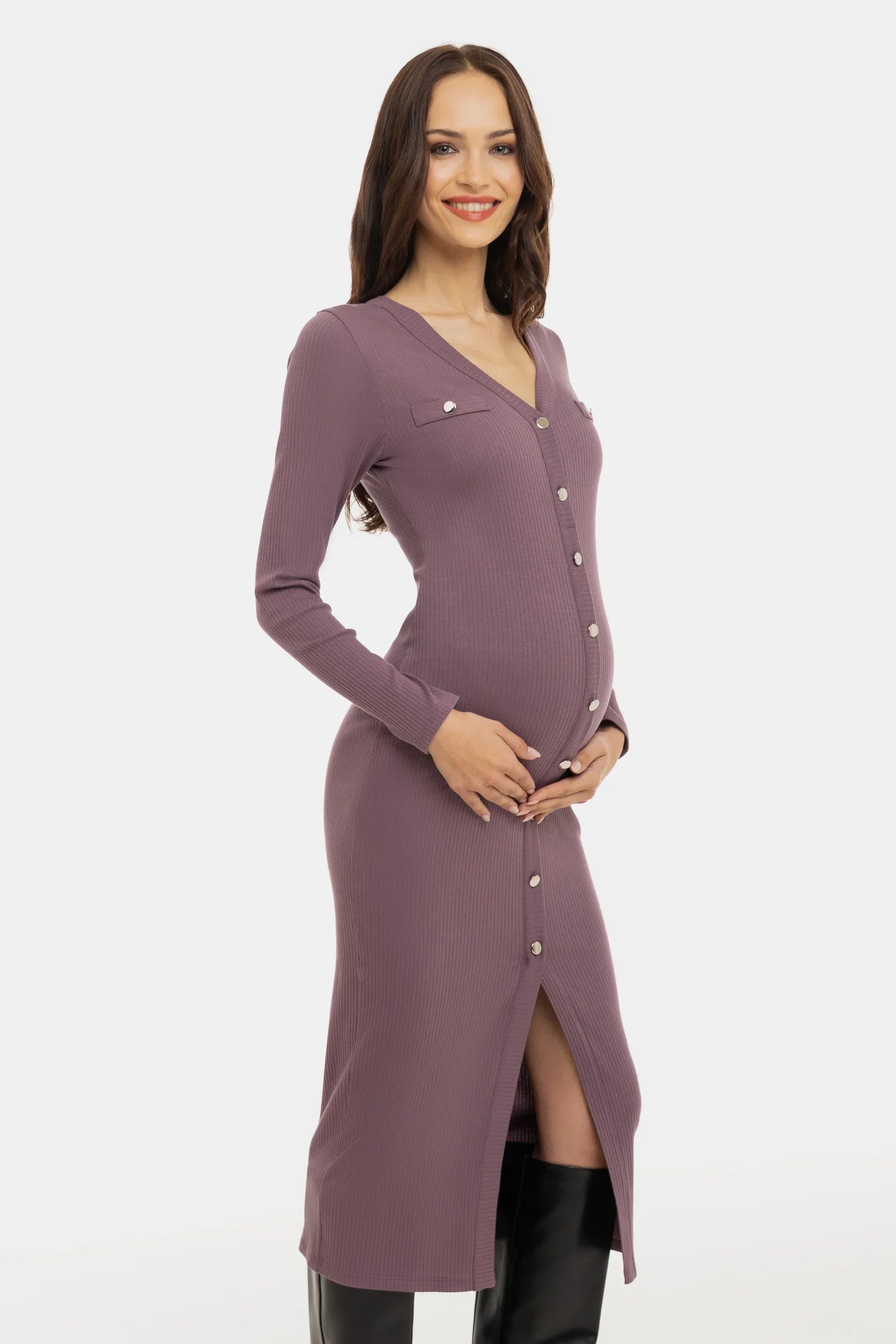 • Těhotenské šaty z měkkého bavlněného žebrovaného materiálu v růžová popelová barva