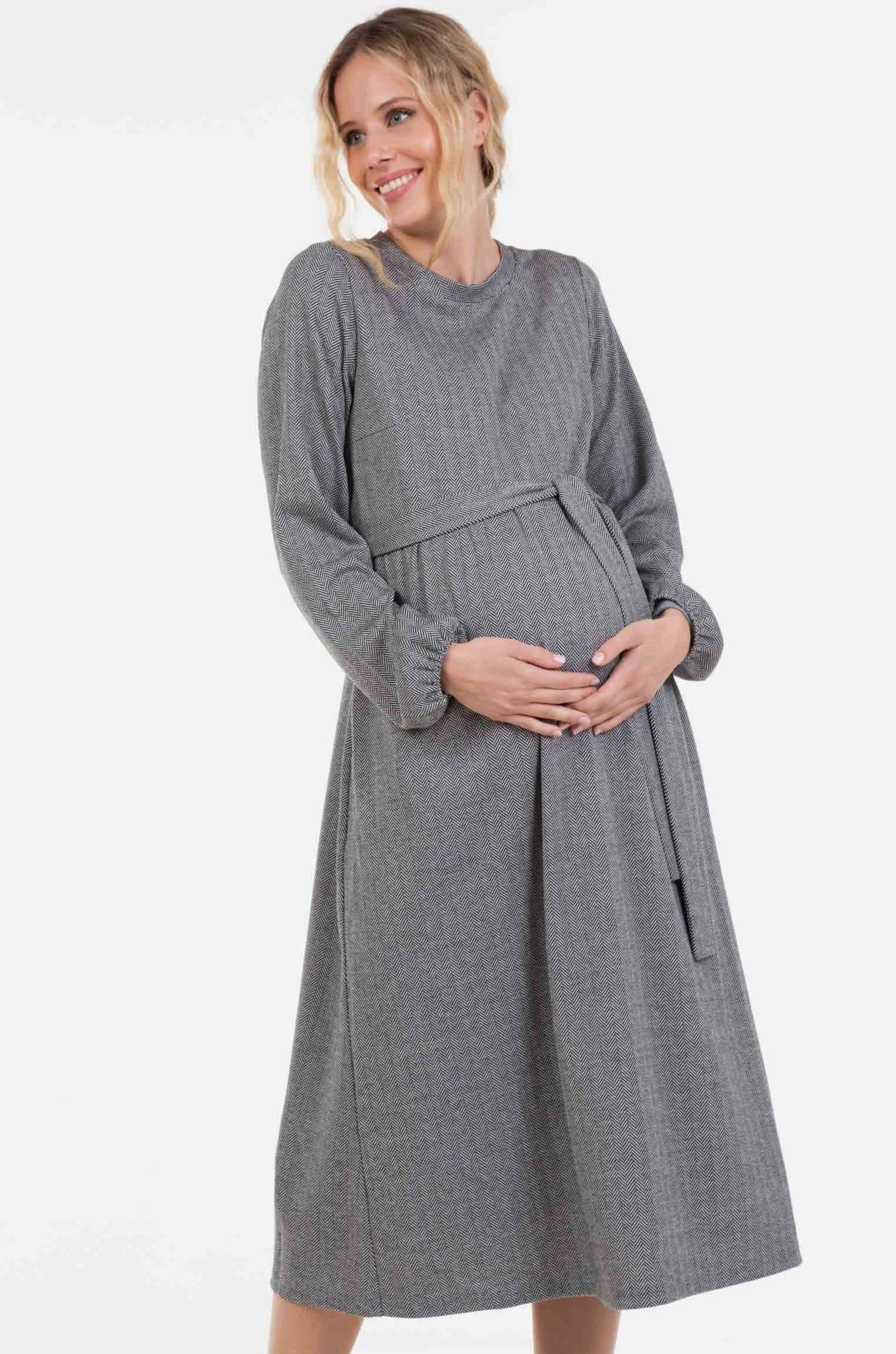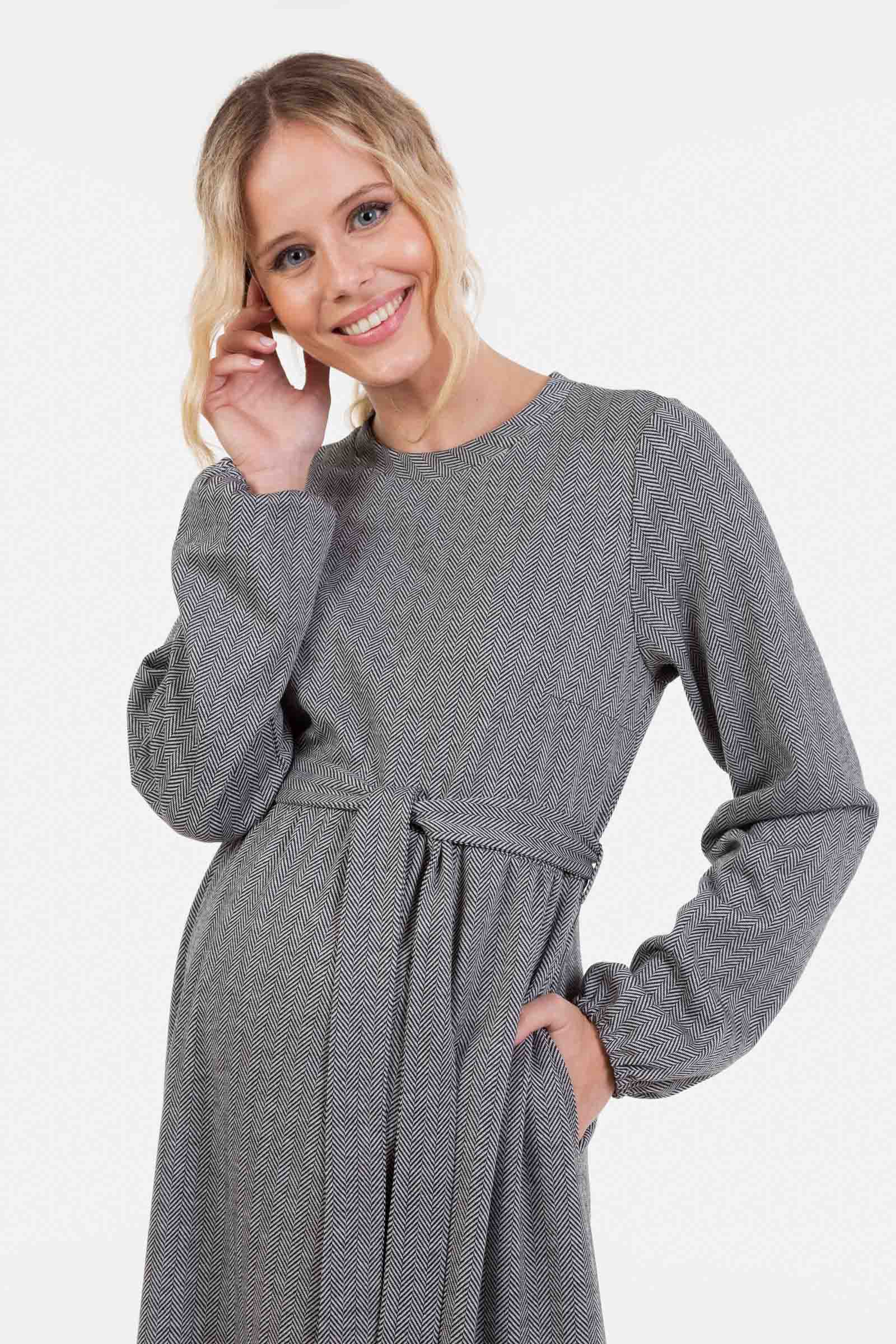 - Dlouhé těhotenské šaty z husté tkaniny se vzorem rybí kosti