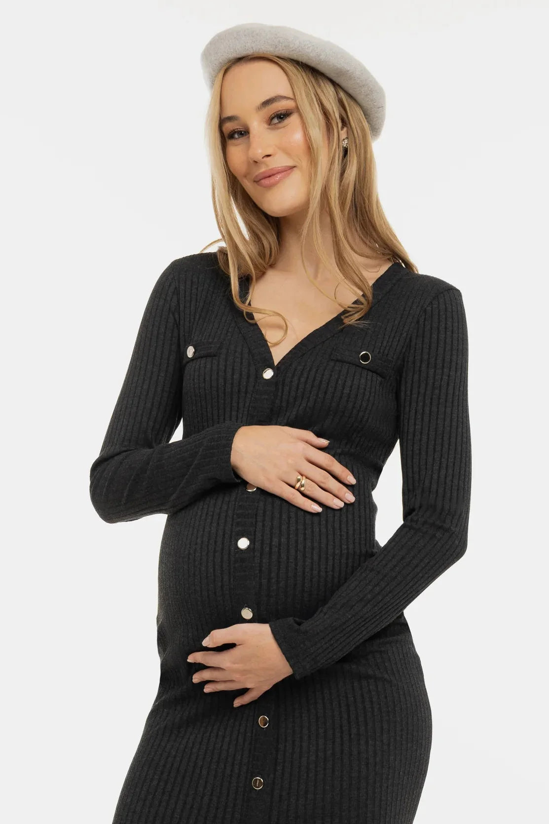 - Těhotenské a kojicí šaty z měkkého úpletu – antracit