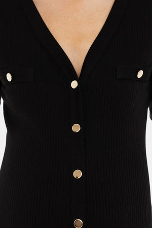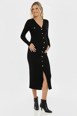 Bavlněné žebrované těhotenské a kojicí šaty – černé