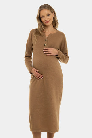 Dlouhé pletené těhotenské a kojicí šaty – karamelové