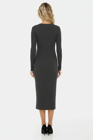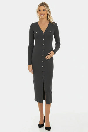 Pletené těhotenské a kojicí šaty na knoflíky – antracit