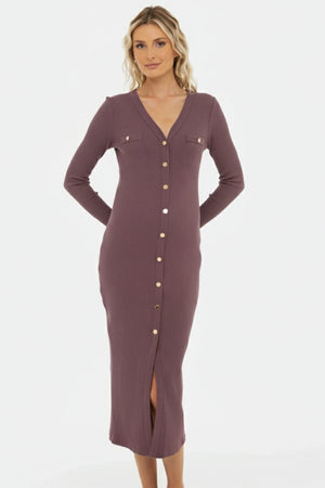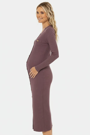Bavlněné žebrované těhotenské a kojicí šaty – popel z růží