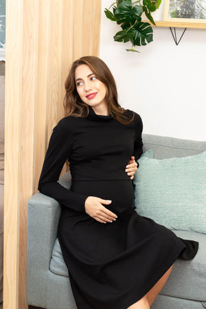 Saténové těhotenské a kojící šaty s pulovrem - černý