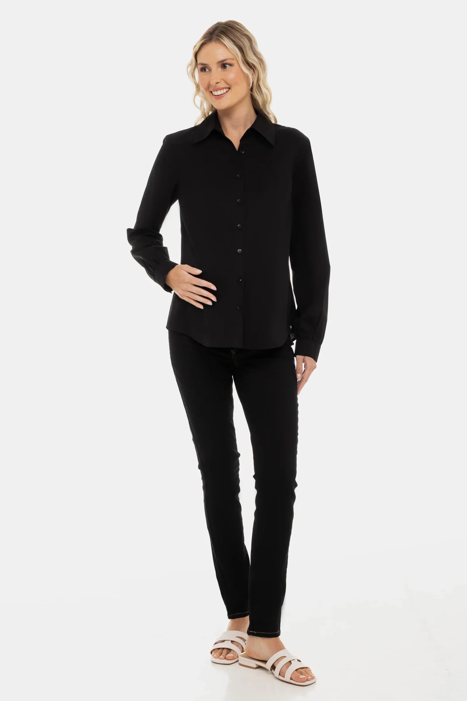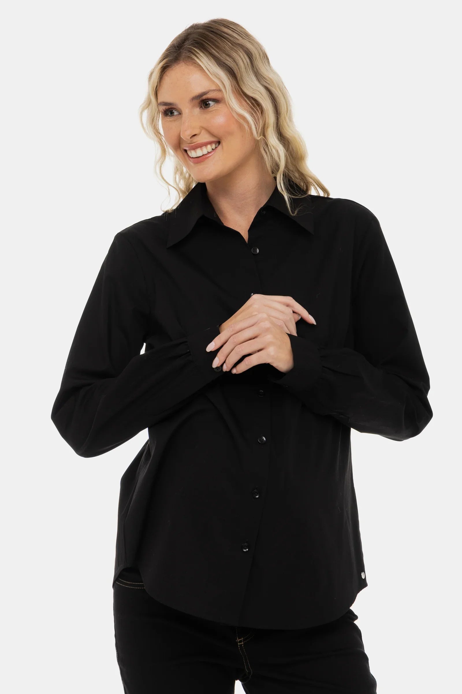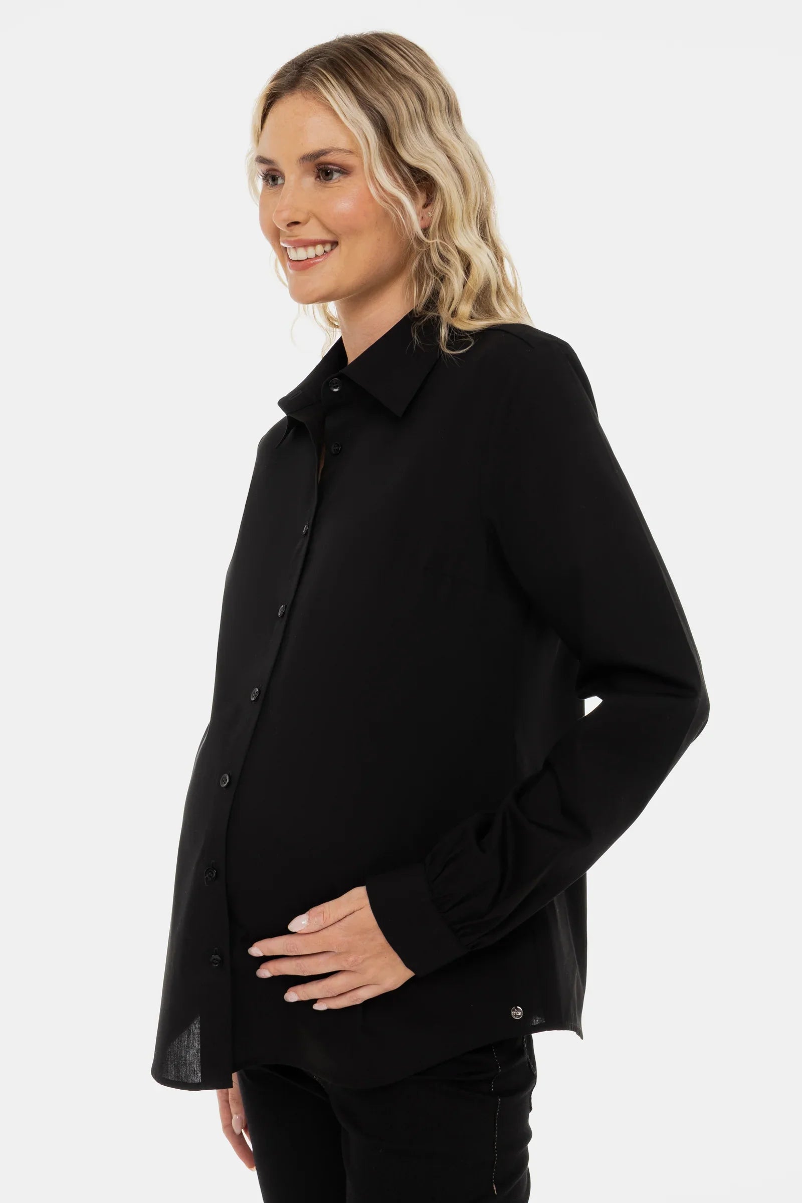 Klasická těhotenská košile ze 100% bavlny – elegantní, prodyšná a vhodná pro každou příležitost.