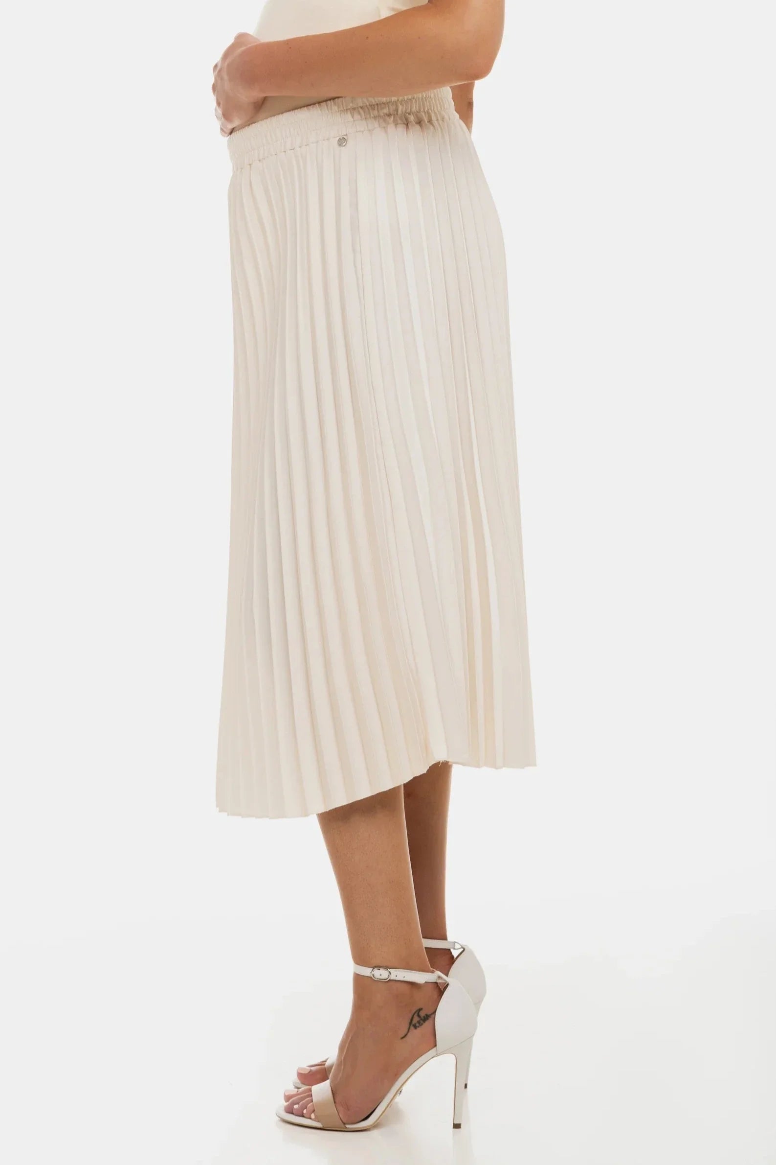 - Sukně z lesklého saténu v krémové barvě
