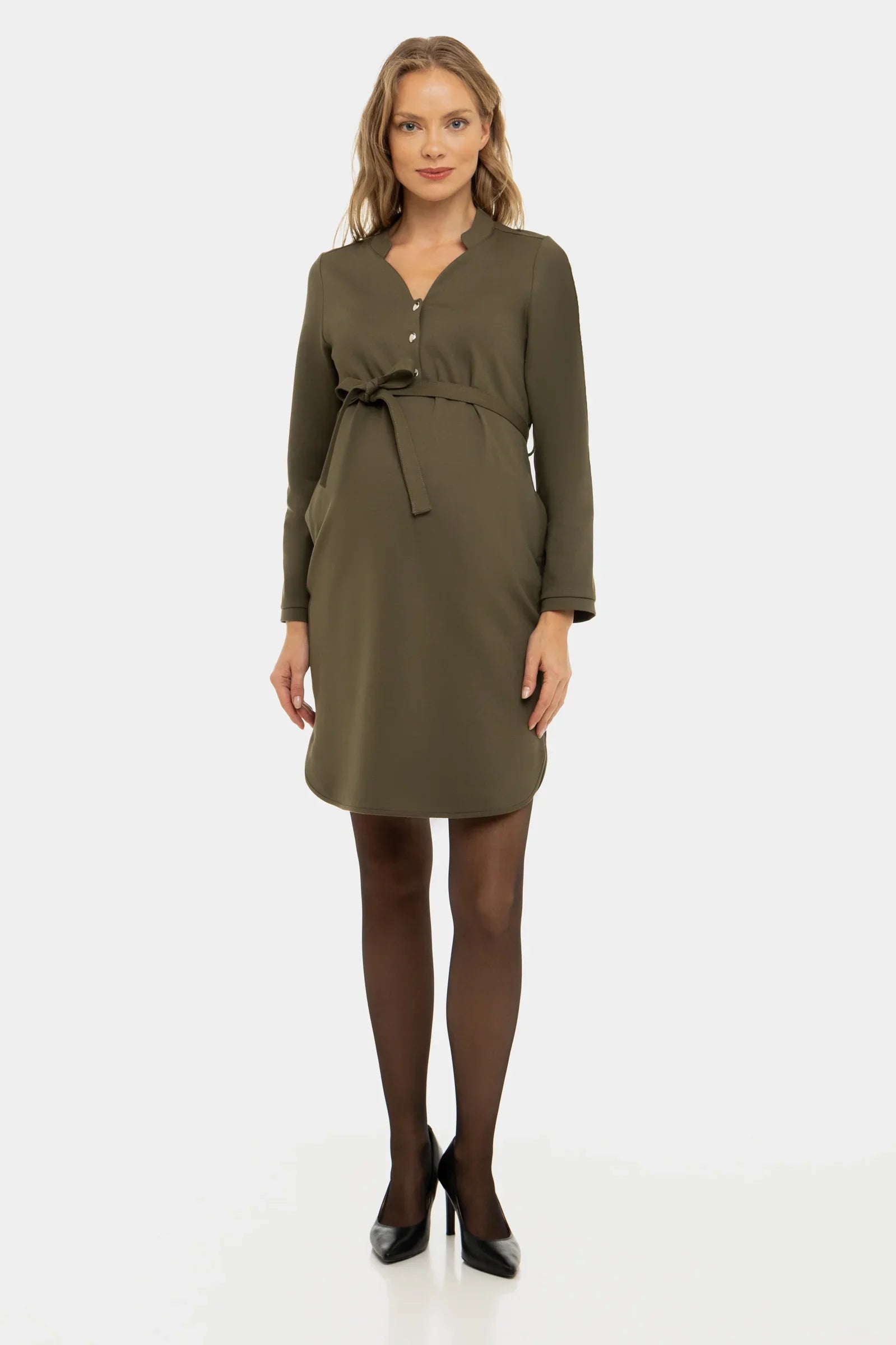 - Těhotenské šaty z pevného žerzeje v khaki barvě