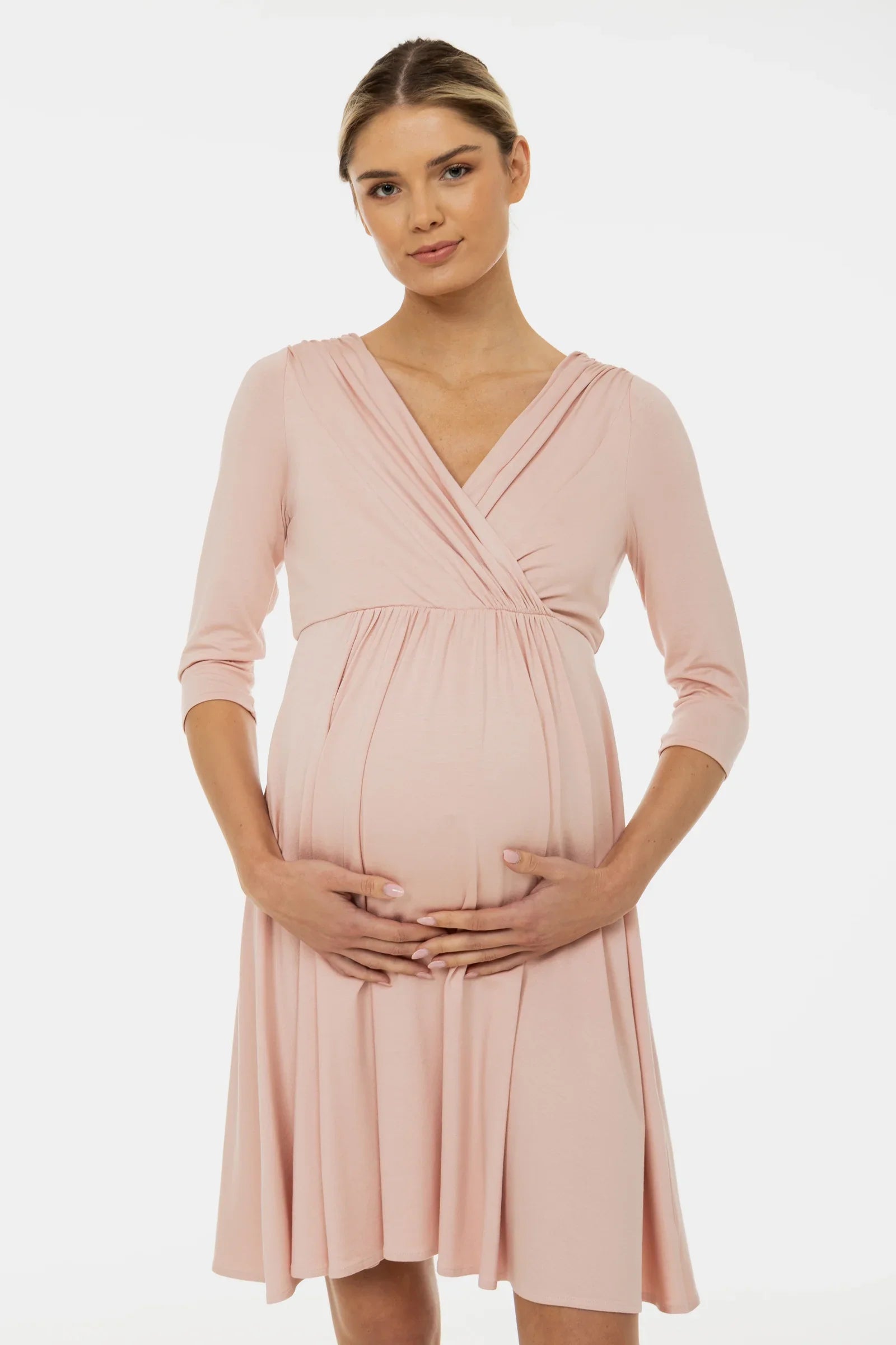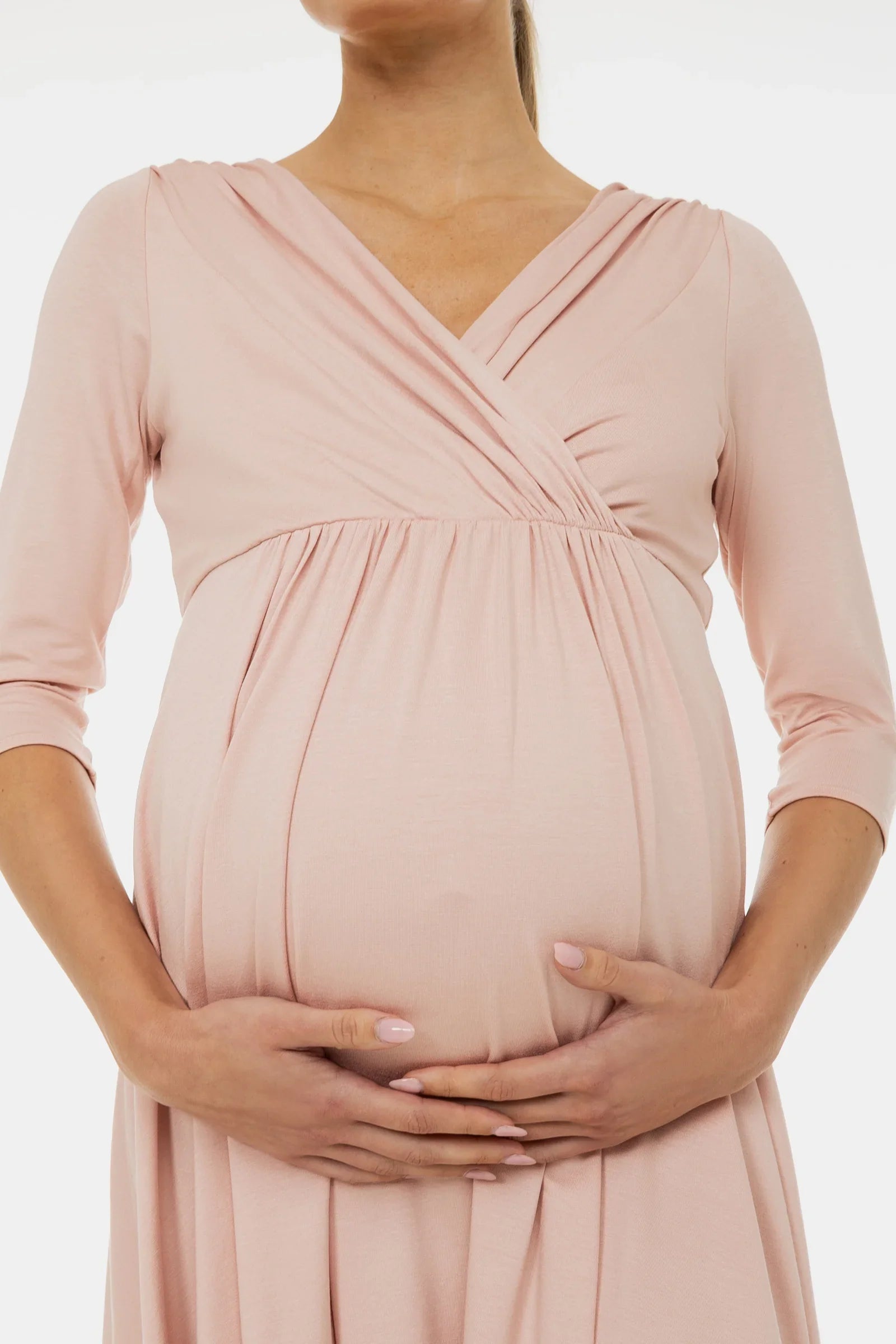 • Těhotenské šaty z elegantního viskózového materiálu v pudrová barva