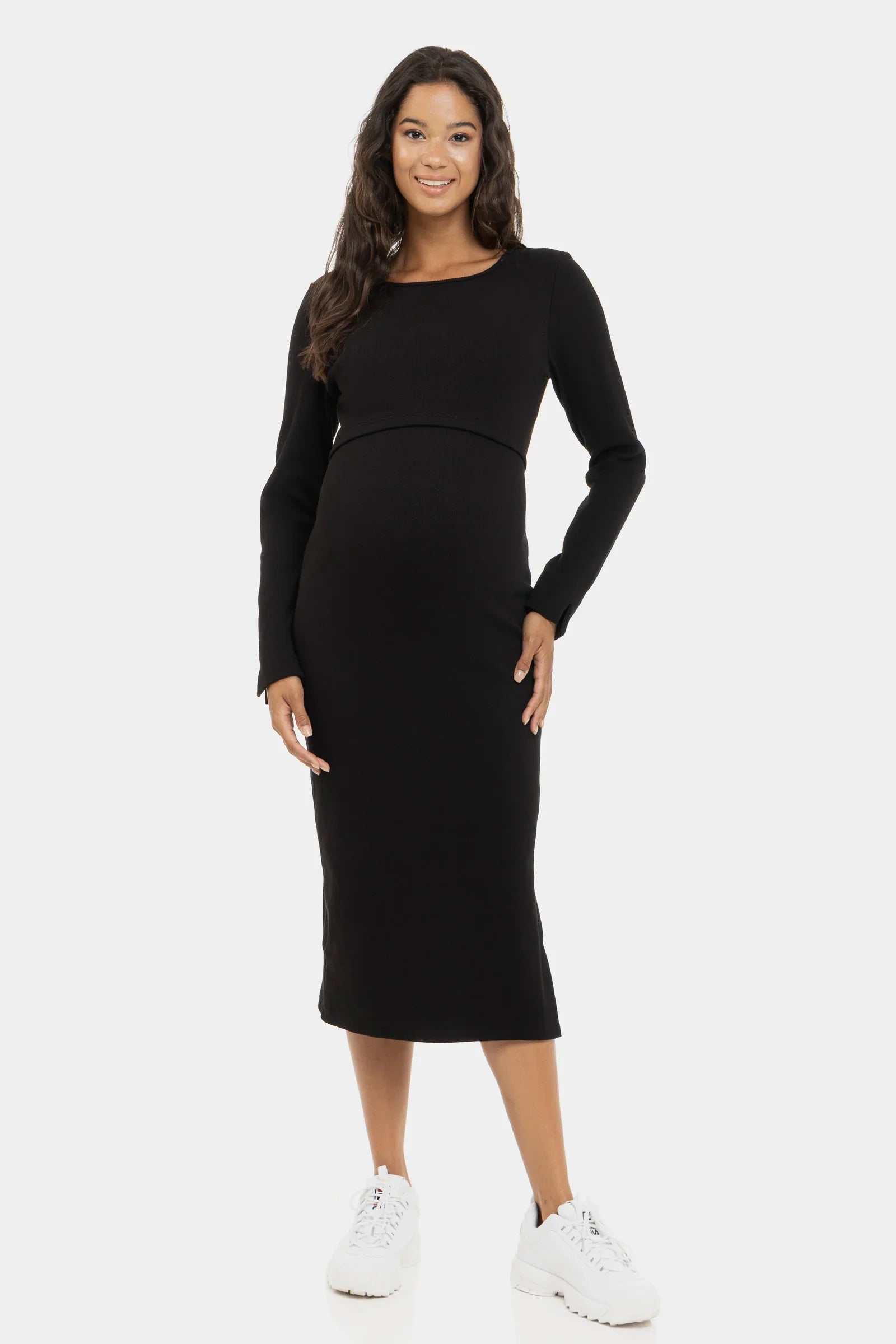 - S vypasovaným střihem, šaty dobře sedí ve všech fázích těhotenství