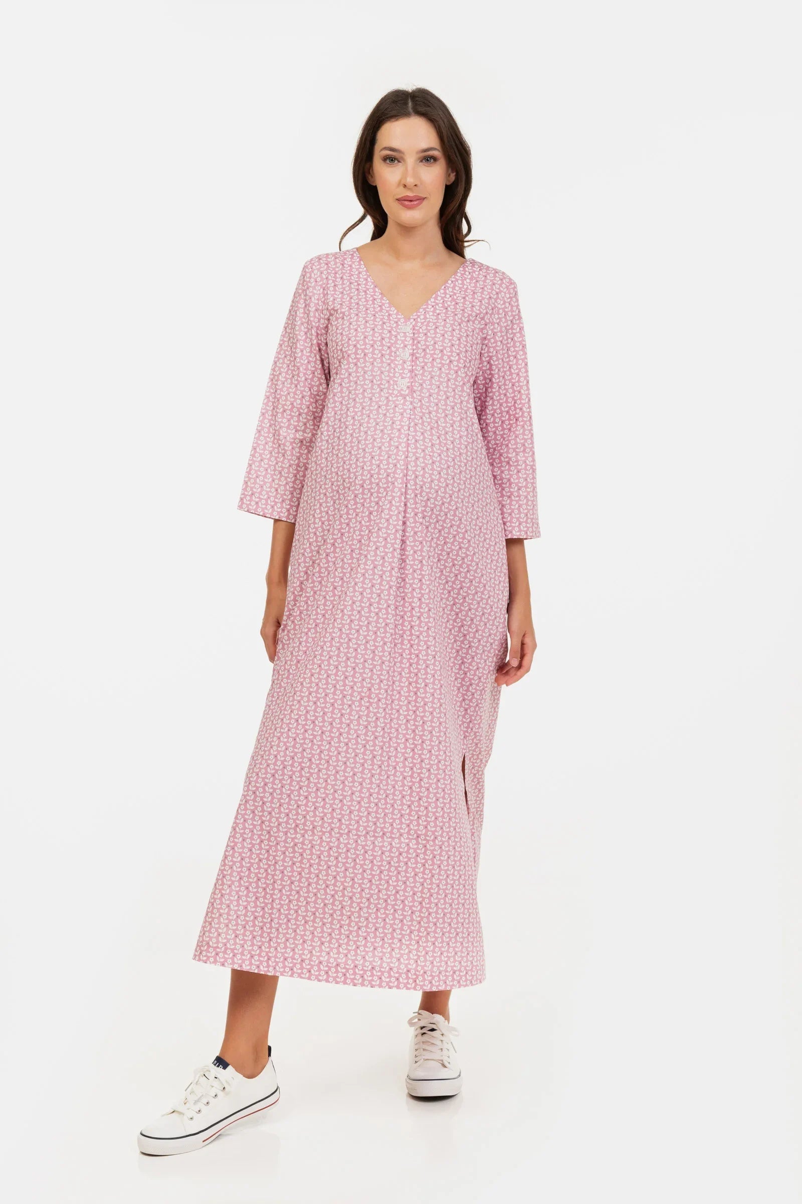 - Šaty jsou vyrobené ze vzorované bavlněné látky