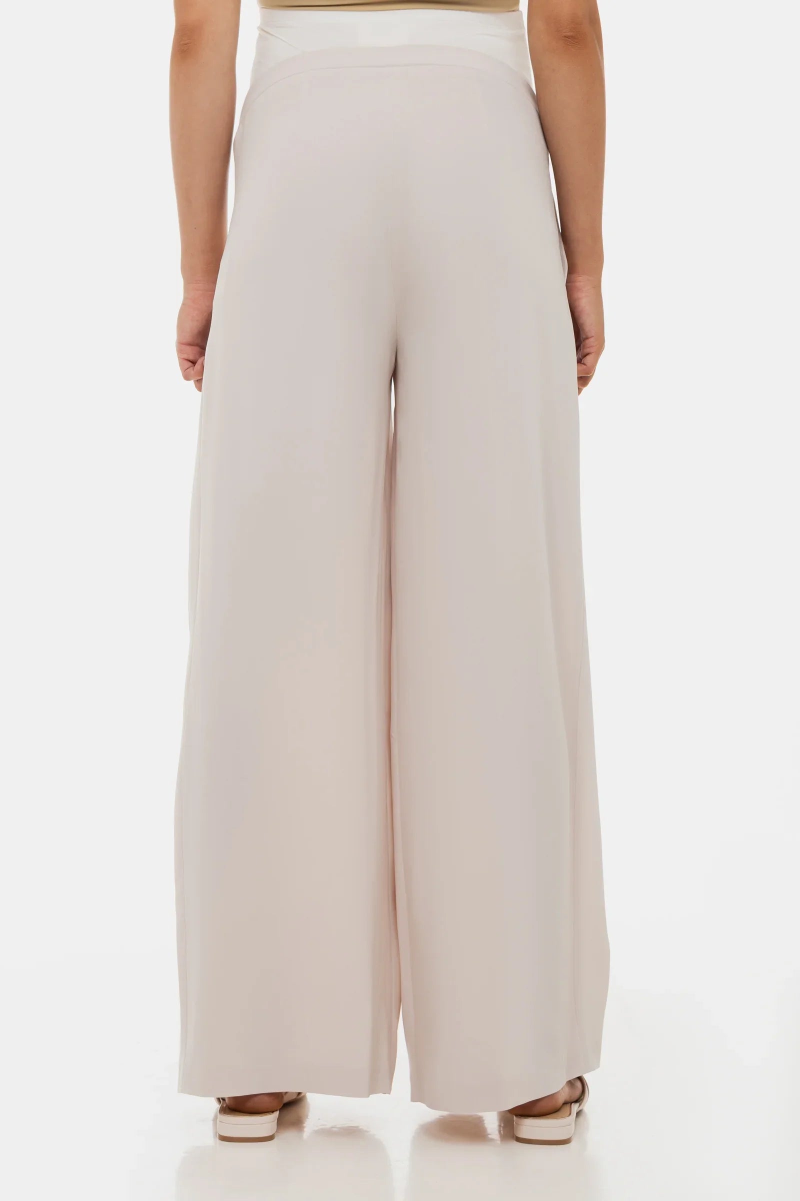 - Těhotenské kalhoty z krásně splývavé látky ve světle béžové barvě