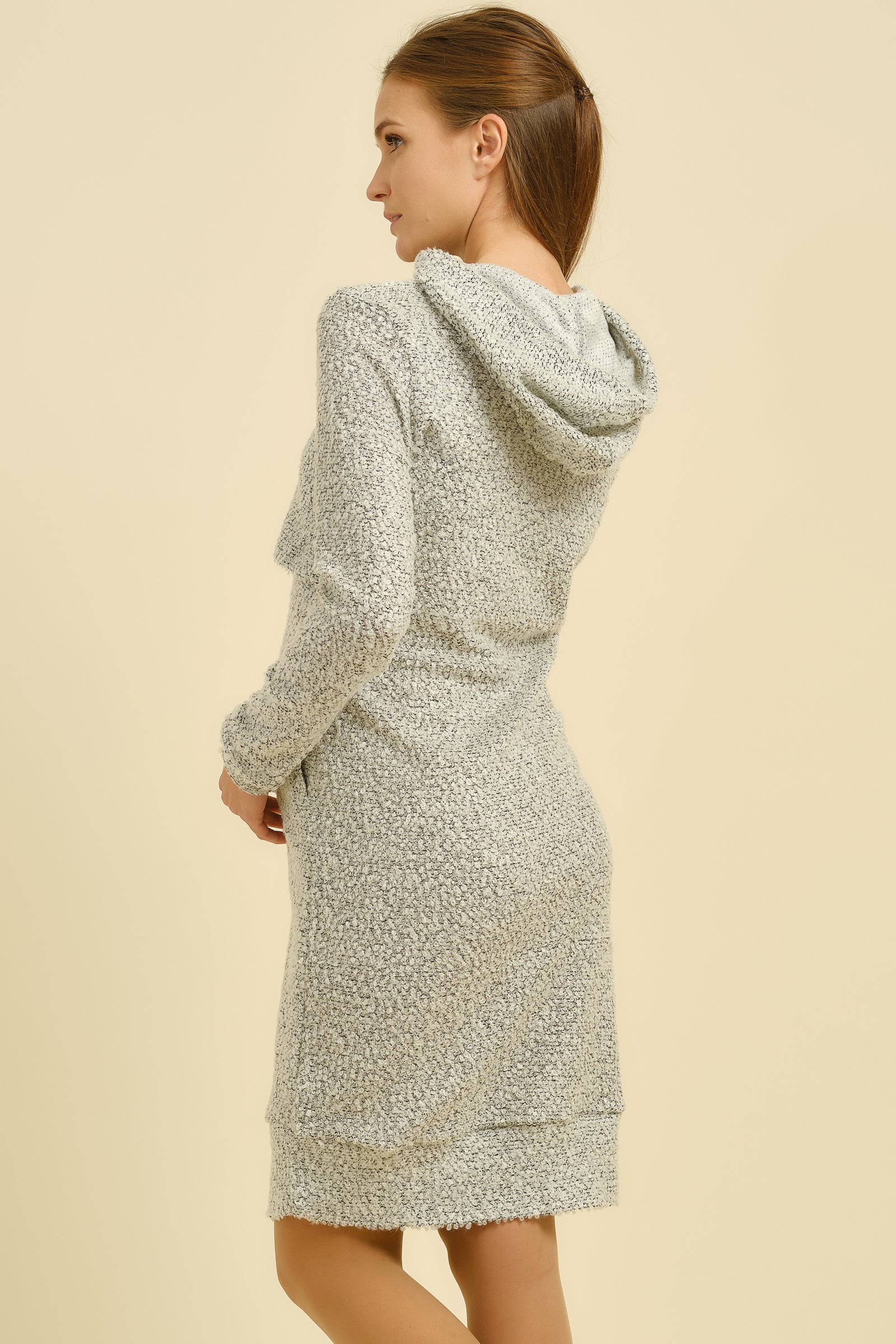 - Šaty jsou vyrobeny z hebké melanžové tkaniny se směsí vlny