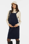 - Pletené těhotenské šaty s laclem z teplého a pružného úpletu v tmavě modré barvě