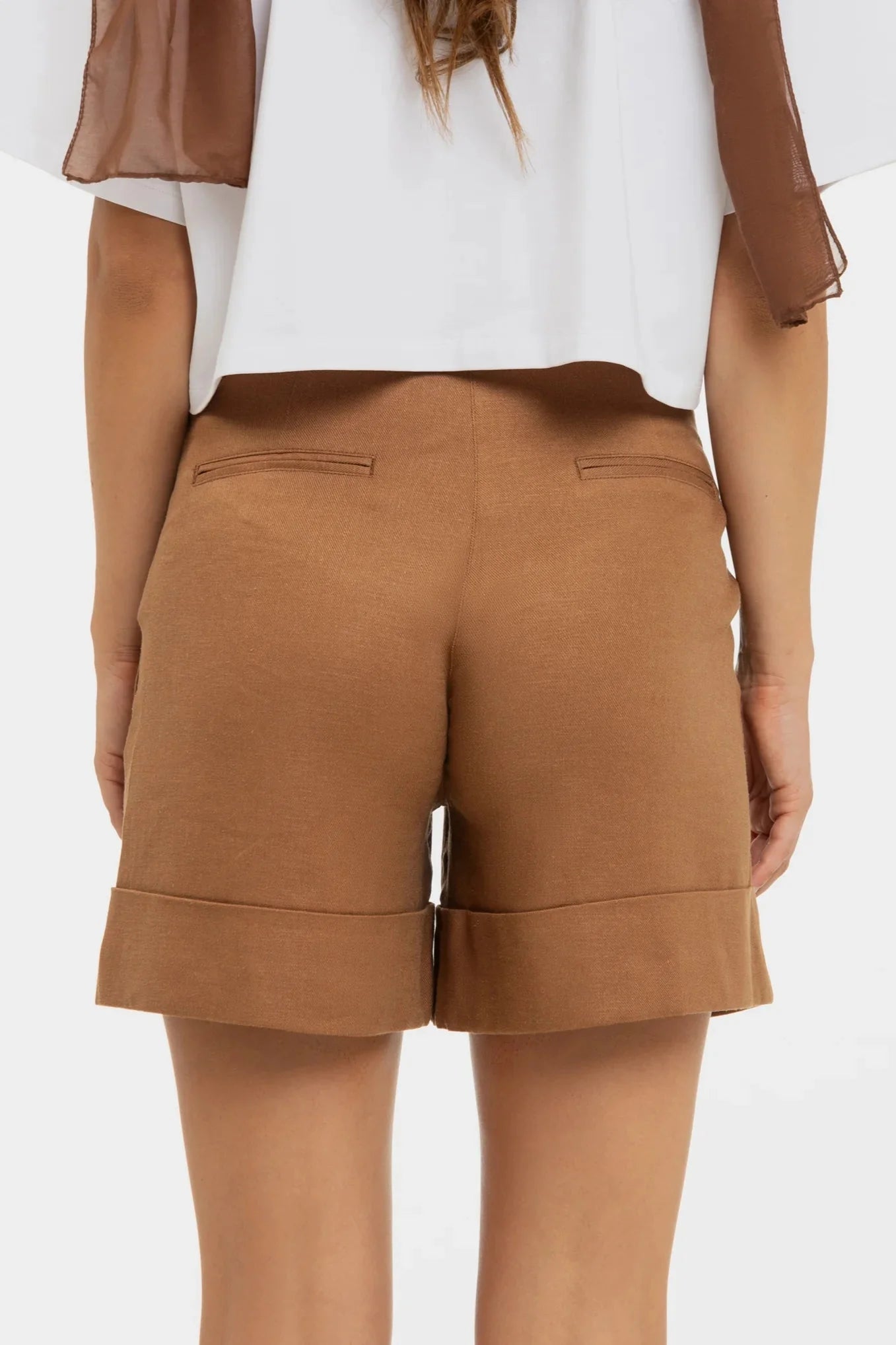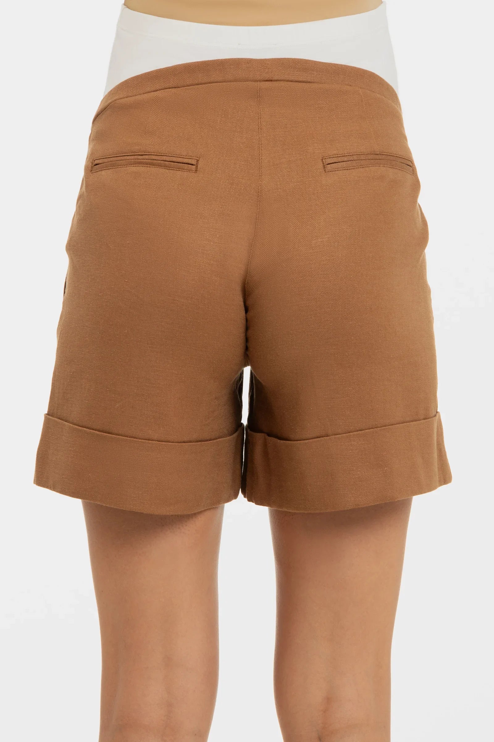- Těhotenské šortky s lněným složením v karamelové barvě