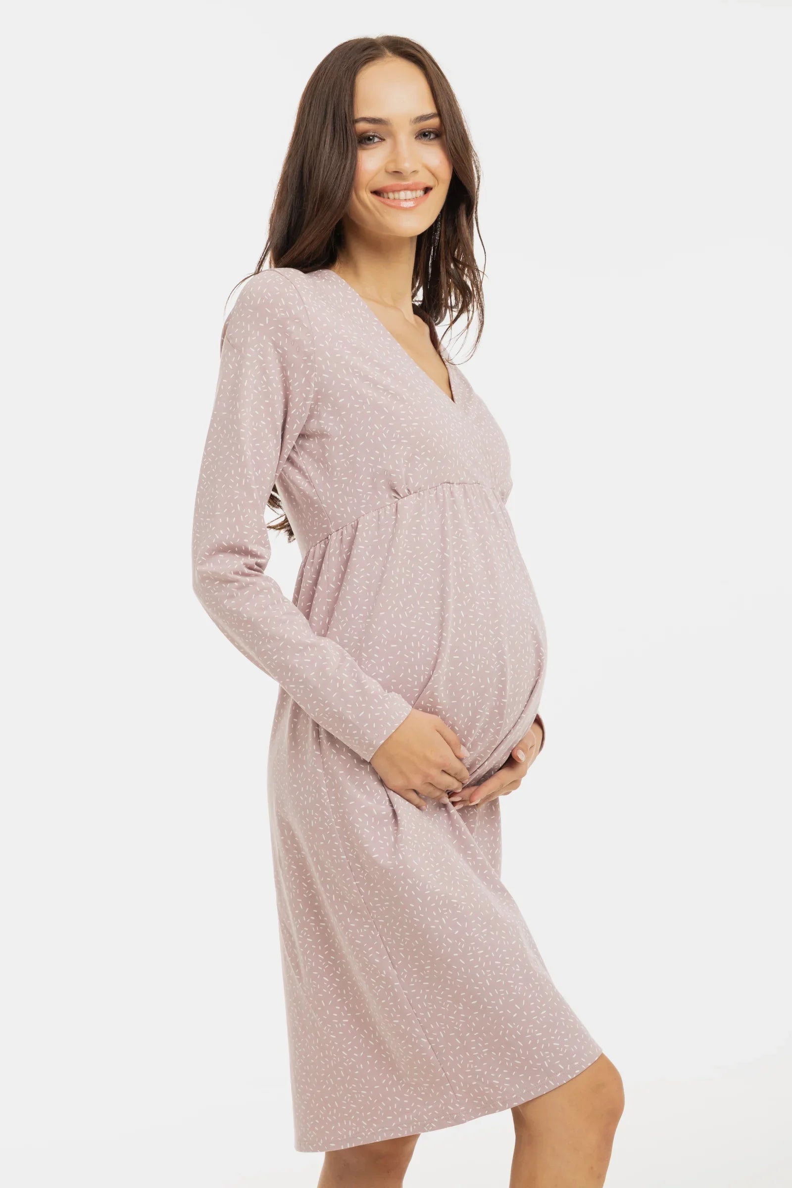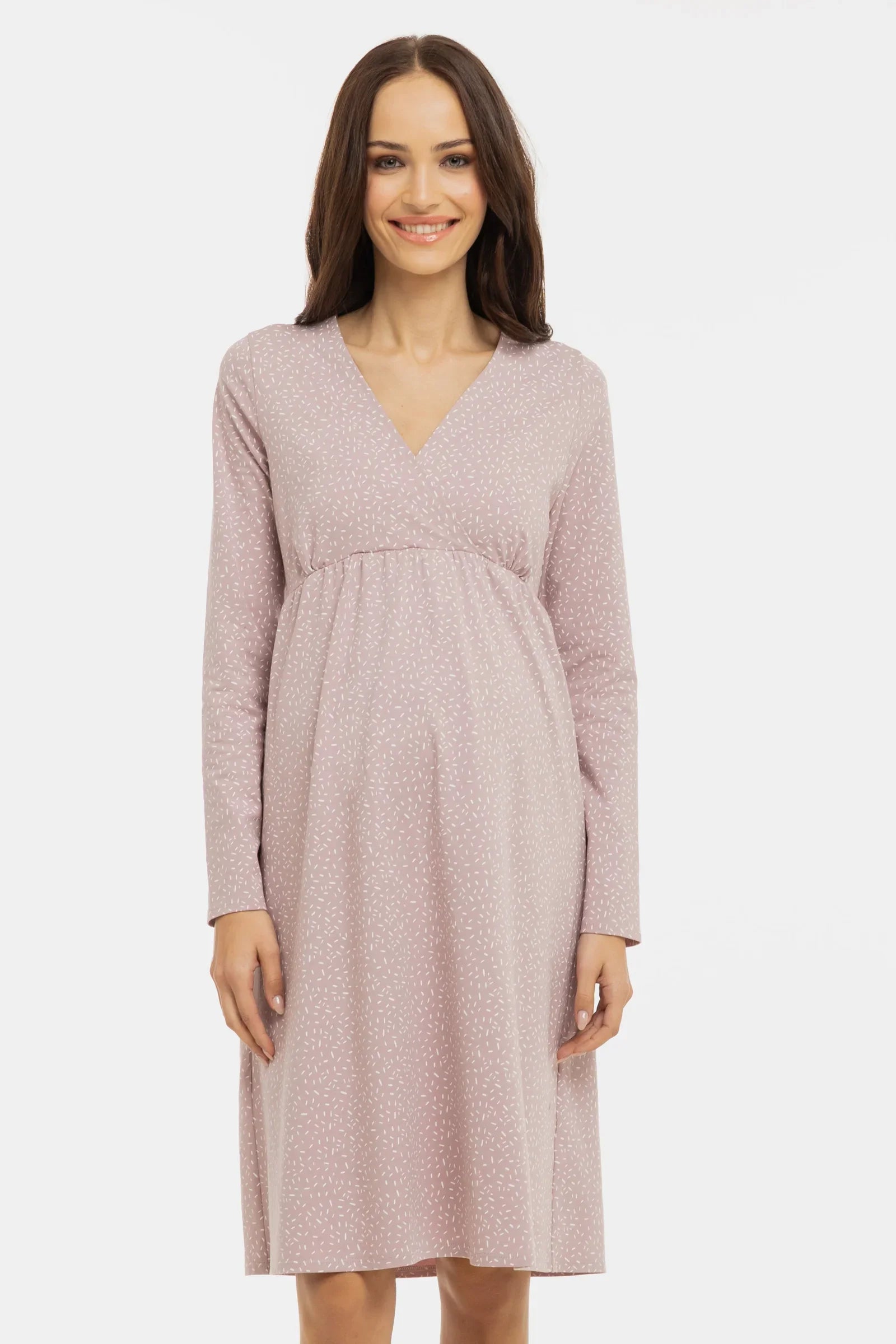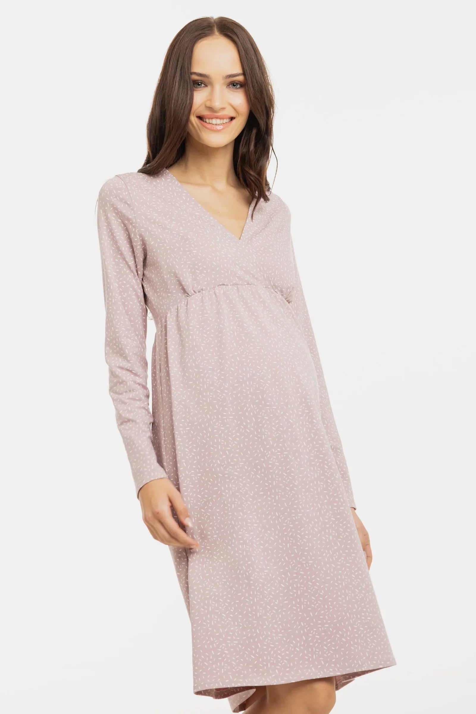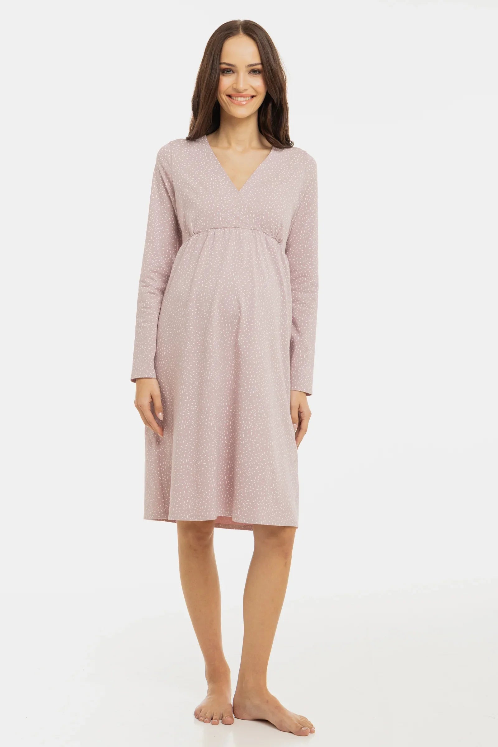 - Těhotenská a kojicí noční košile z měkkého bavlněného úpletu se vzorem