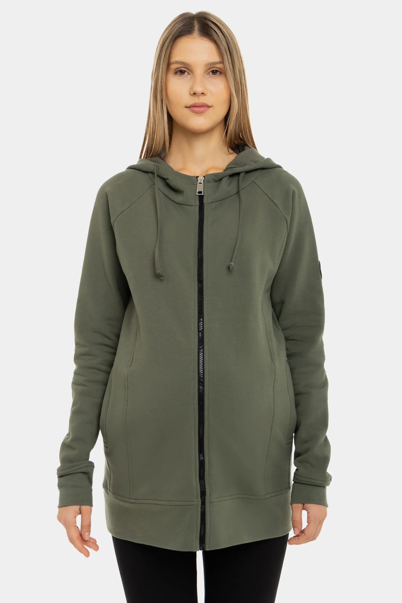 Náš vatovaný těhotenský a nosicí mikinový kabátek je navržen pro tvůj aktivní životní styl! Vyroben z certifikovaných materiálů.