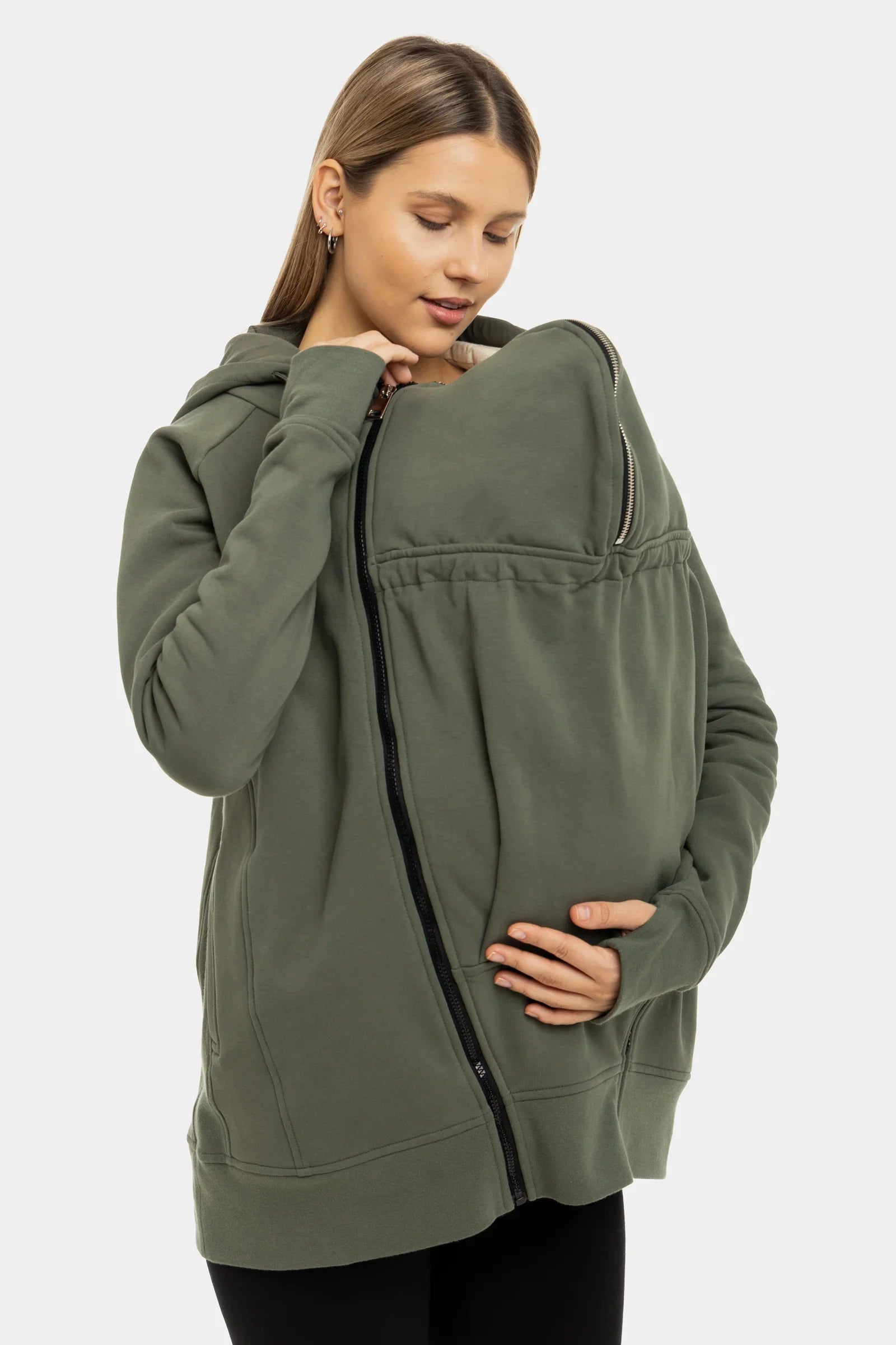 Těhotenská mikina 3 v 1 s měkkou vnitřní podšívkou na nošení miminka – khaki