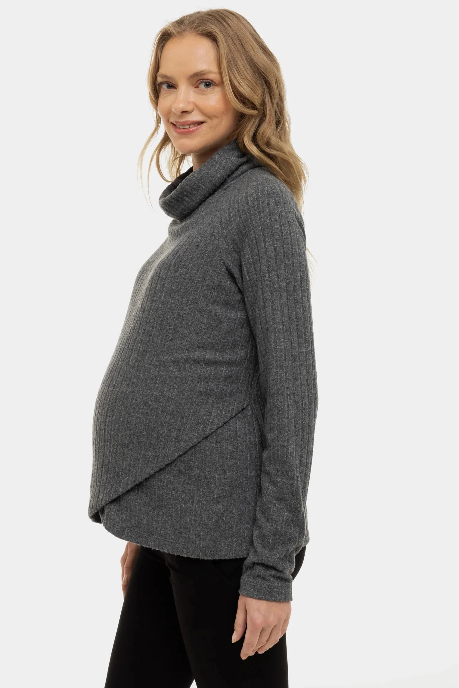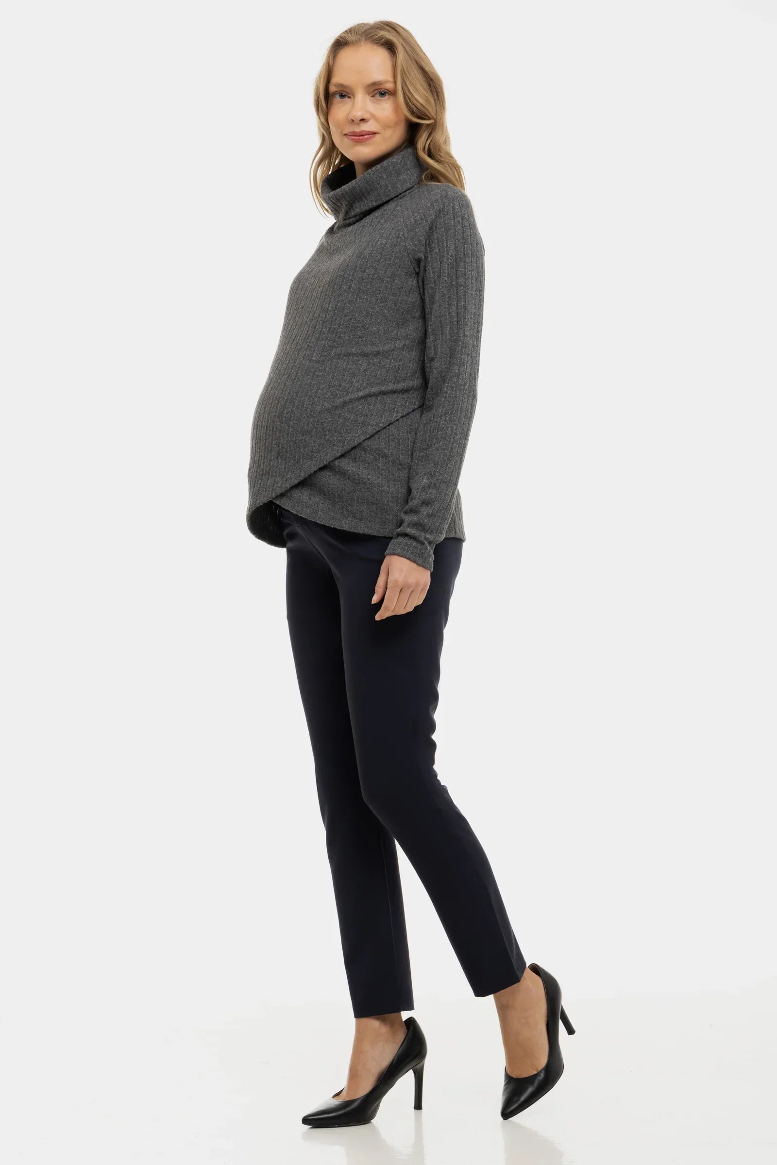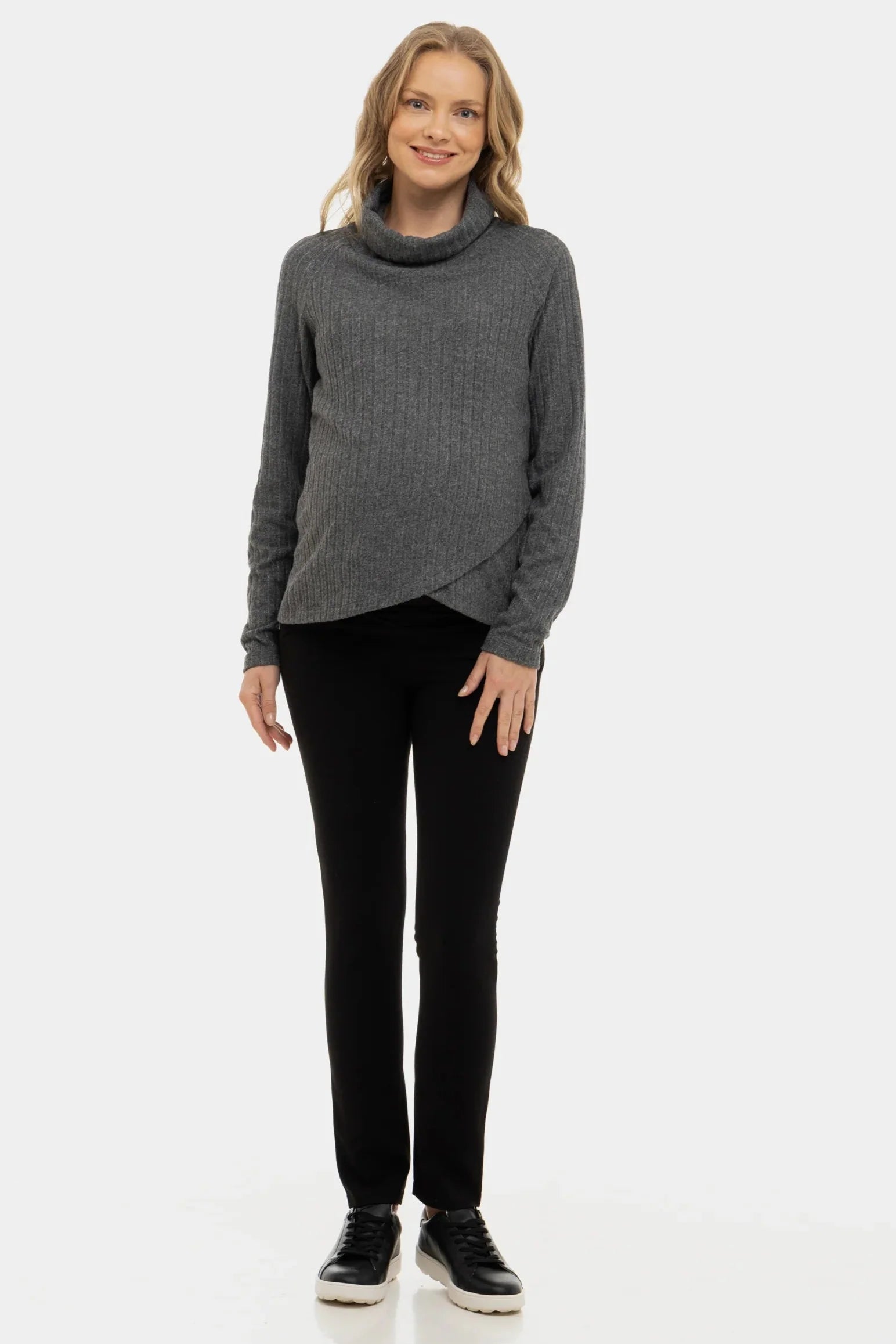 • Těhotenský svetr z žebrovaného úpletu v tmavě šedé