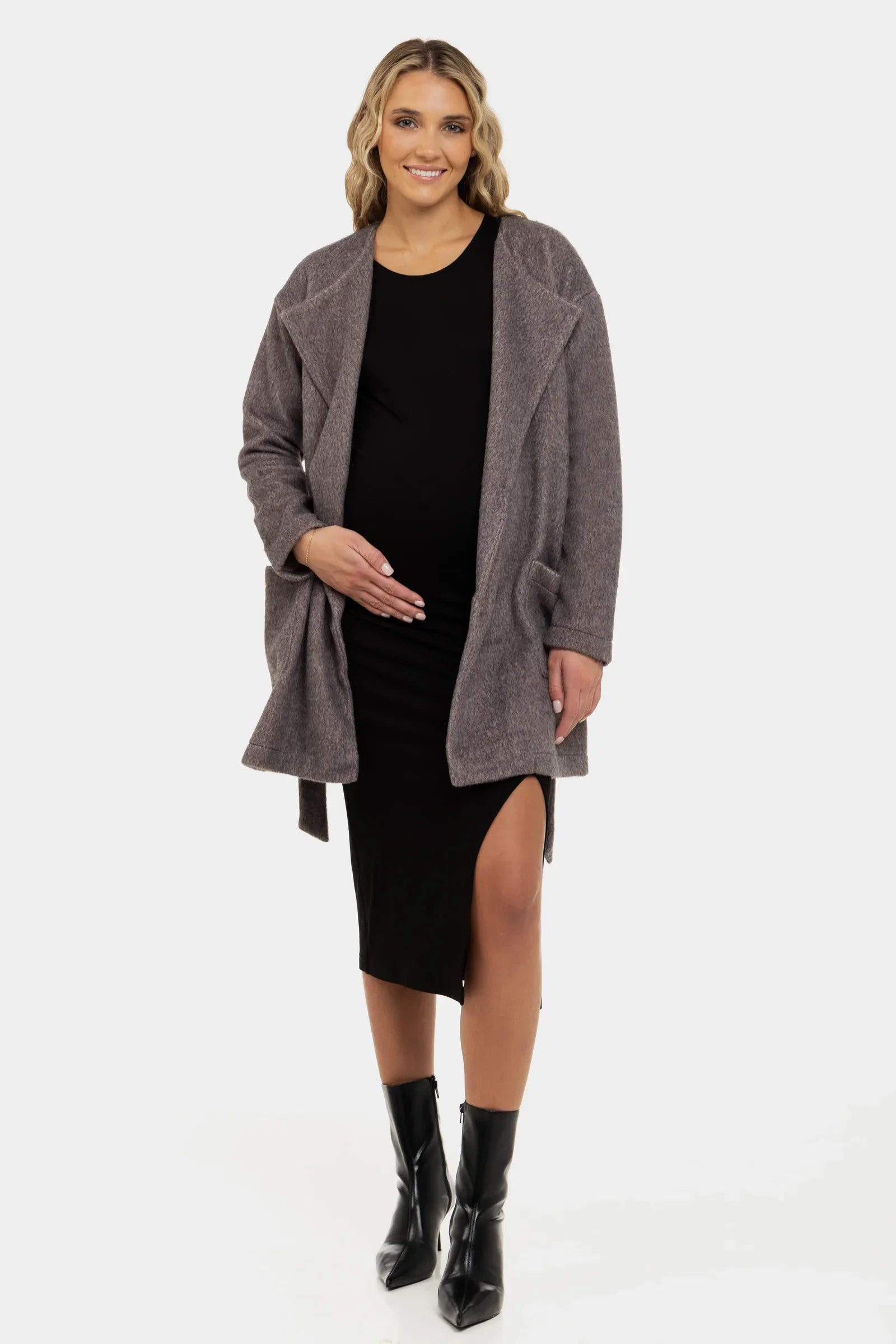 • Těhotenské kardigan z látky s pletenou vnitřní částí a vnější částí z eko vlasu