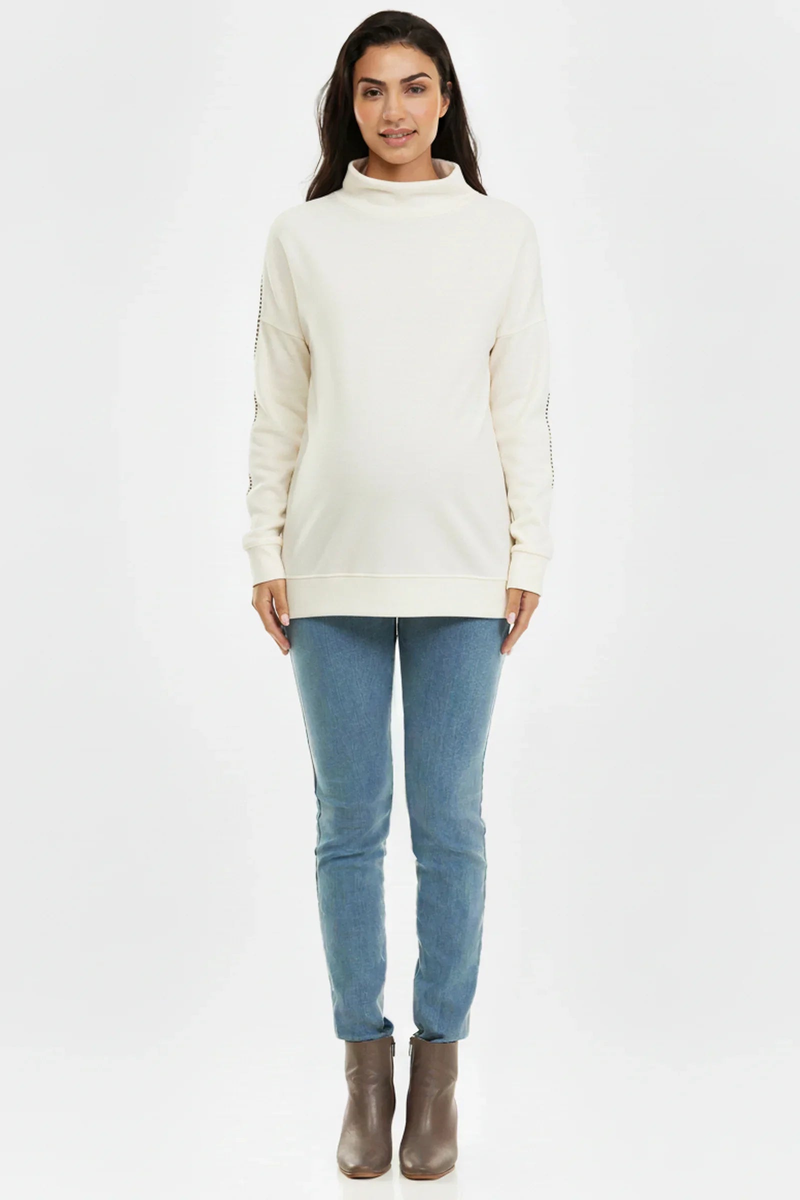 - Díky elastickému provedení přes bříško je možné džíny nosit také po porodu nebo kdykoliv jindy