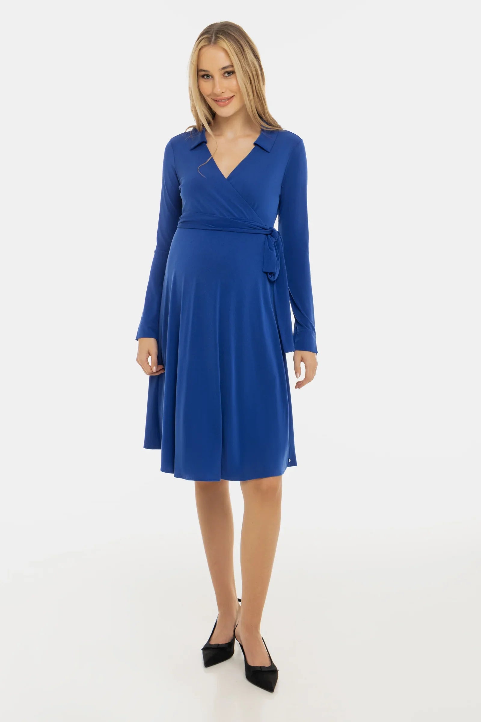 Lehké těhotenské a kojicí šaty z hebkého materiálu s překříženým designem, který zvýrazní siluetu a poskytne volnost pohybu – ideální pro každou slavnostní příležitost!