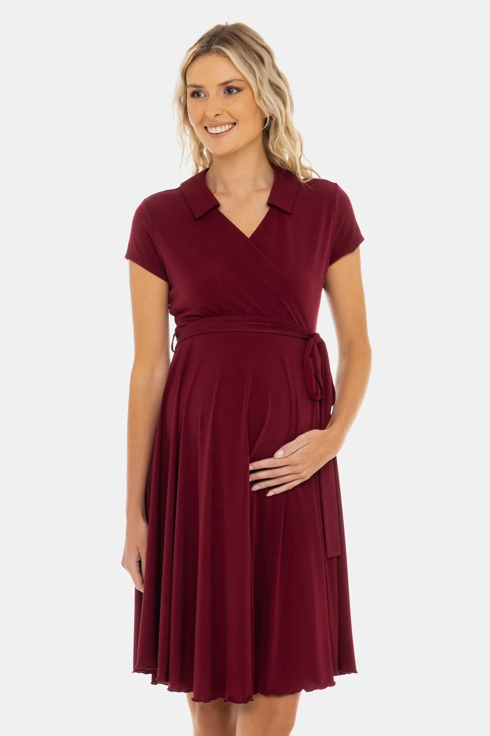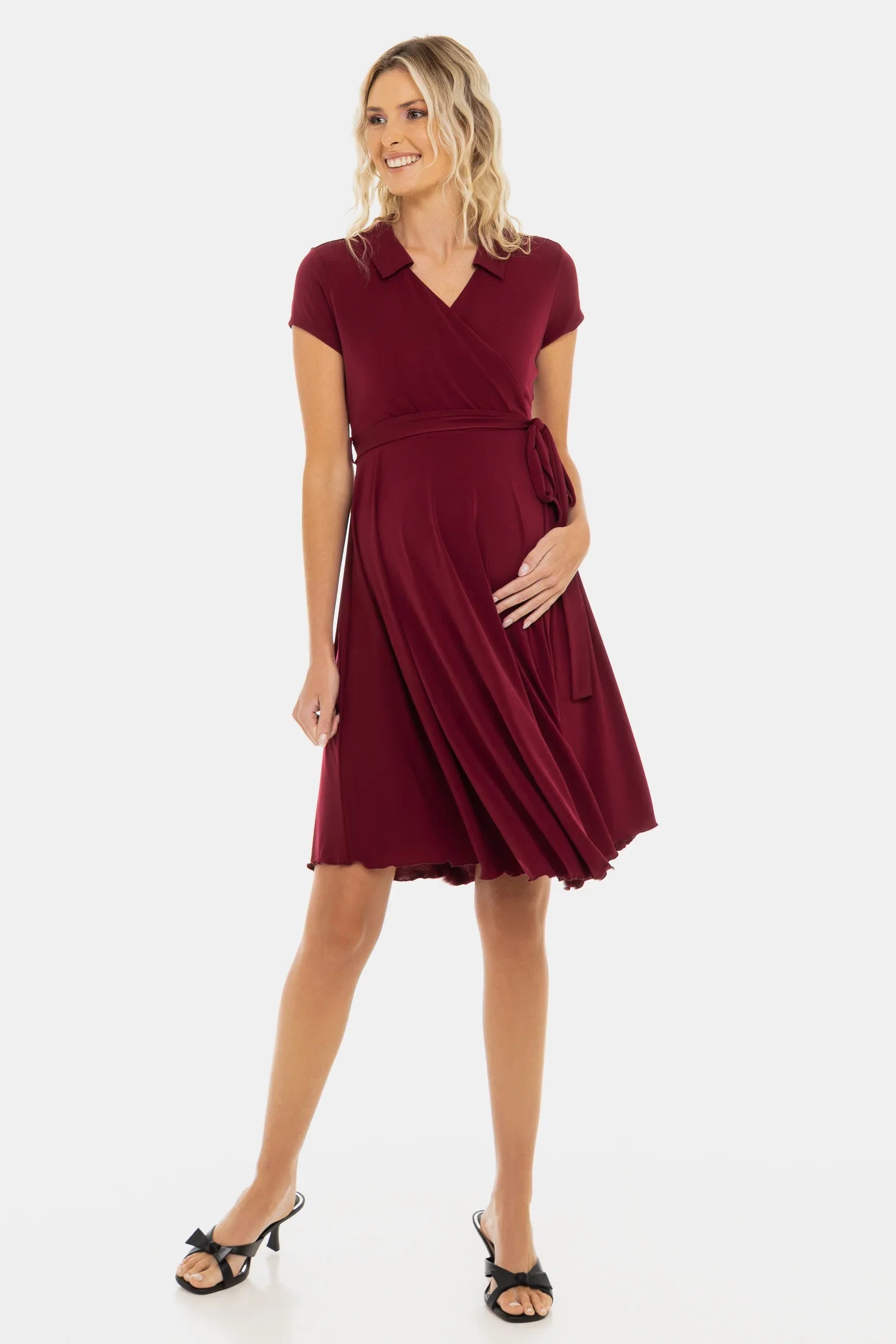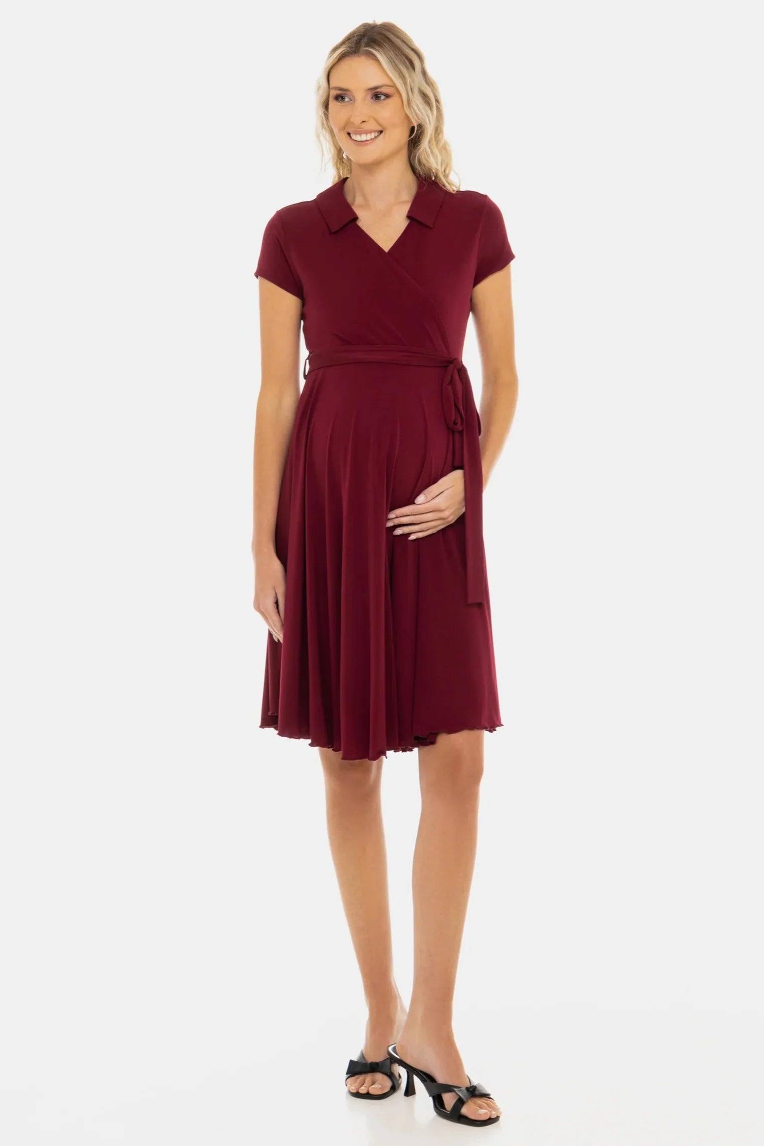 Vzdušné těhotenské a kojicí šaty z hebkého materiálu s překříženým střihem, který podtrhuje siluetu a poskytuje volnost pohybu – ideální pro každou slavnostní příležitost!